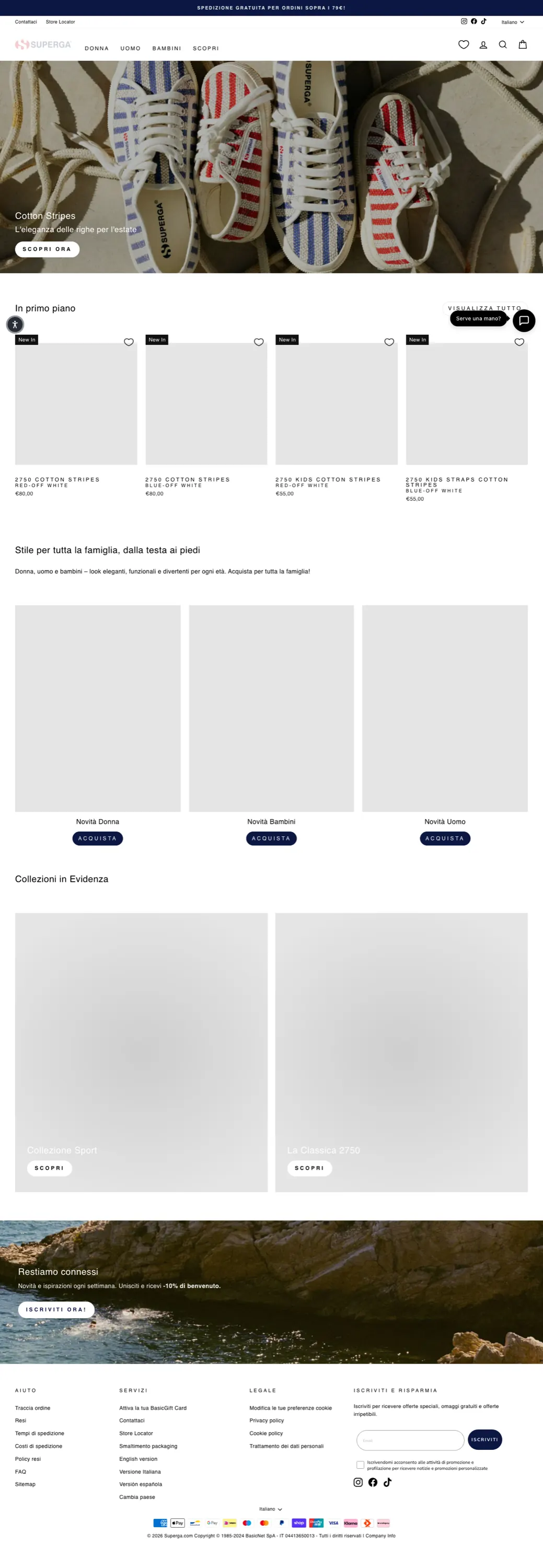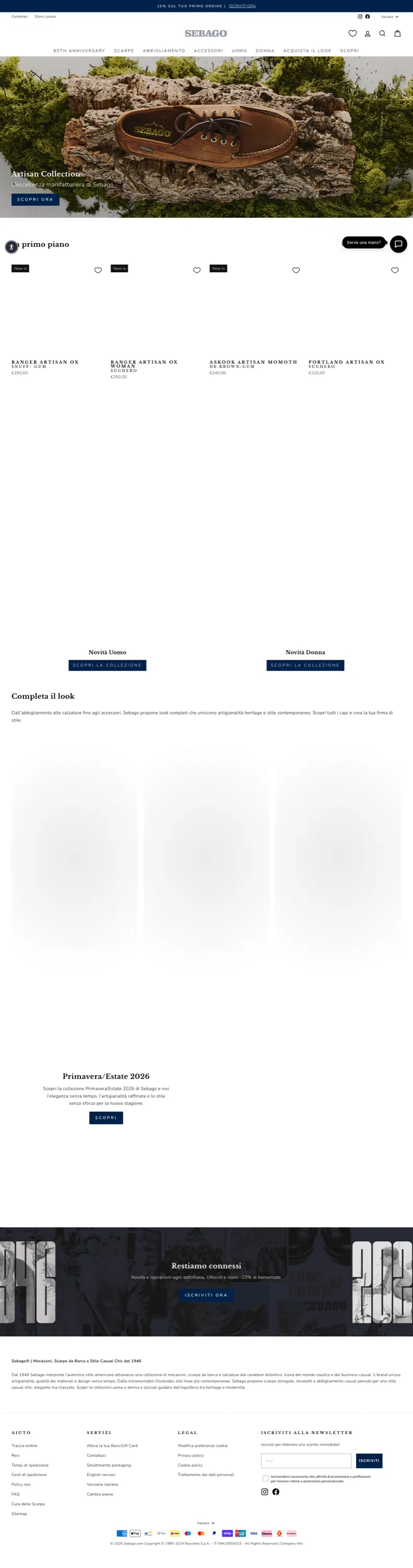 - —Sebago: sebago.com/it_IT 404, account social frammentati